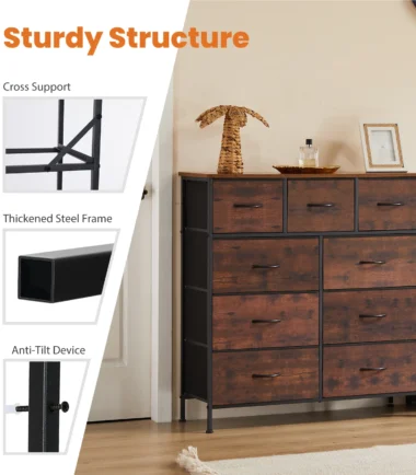 JHK Dresser For Bedroom With 9 Fabric Storage Drawer Wardrobe Tall Chest Organizer Closet Adult Kids Clothes Cabinet Furniture