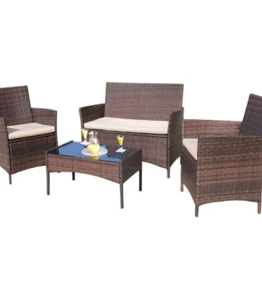 SPECIFICATIONS Brand Name: NoEnName_Null High-concerned chemical: None Installation Method: Assembly Origin: US(Origin) Utilize Your Outdoor Area: 4 pieces patio furniture sets can easily meet your needs to conduct a conversation in your porch, balcony or other outdoor space. Bathing the sunshine or having a rest after working, it can also