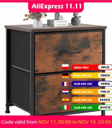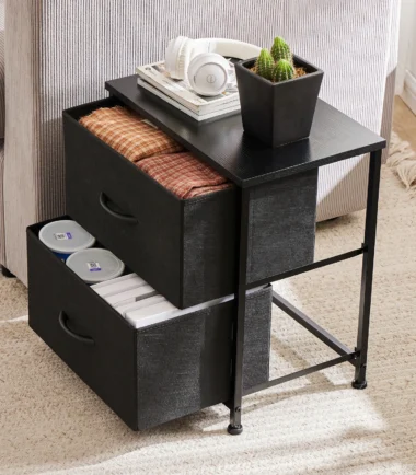 JHK Nightstand Bedside Coffee Sofa Tea Table Storage Closet Chest Clothes Display For Bedroom 2 Fabric Drawers Cabinet Furniture