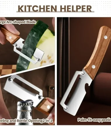 Multi Functional Vegetable Peeler for Kitchen, Premium Peeler with Wooden Handle and Bottle Opener, Stainless Steel Single Blade