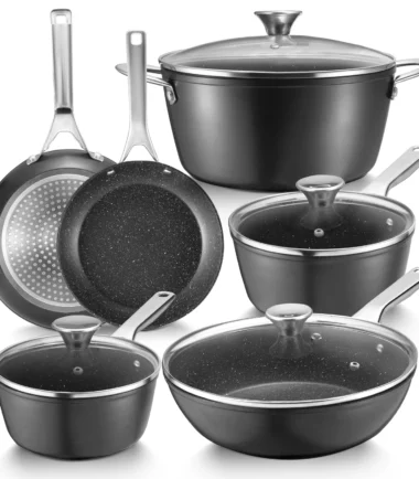 Induction Cookware Nonstick, 10-Piece, BEZIA Pots and Pans Set for Induction Cooktop, Compatible with All Stoves