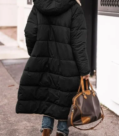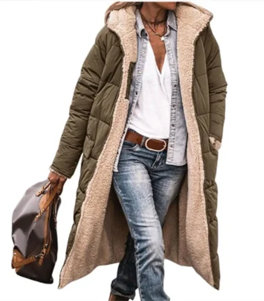 Winter Hooded Quilted Jacket For Women Solid Reversible Long Sleeve Thick Coat Warm Fashion Long Outerwear Casual Puffer Coats