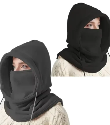 Unisex Winter Balaclava Knit Hood – Windproof Mask with Drawstring, Motorcycle Riding Headgea Warm Knitted Cap Cold Weather