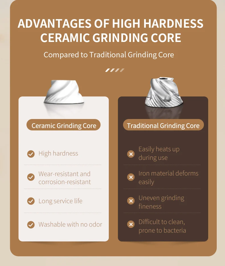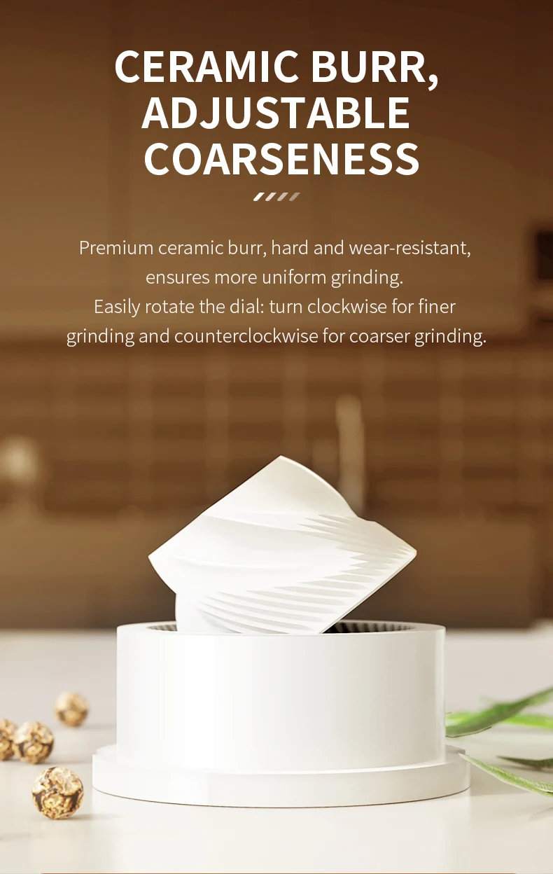 7. The ceramic grinder is on the top to keep your table or countertop free of residue.