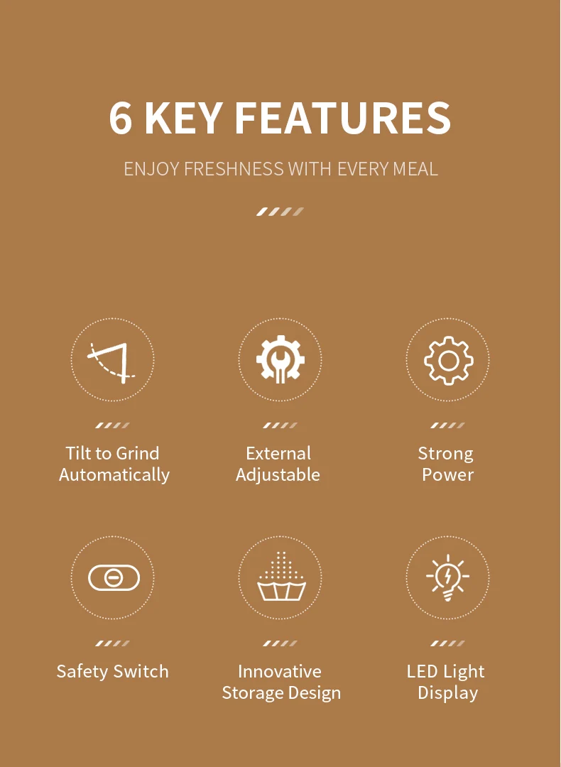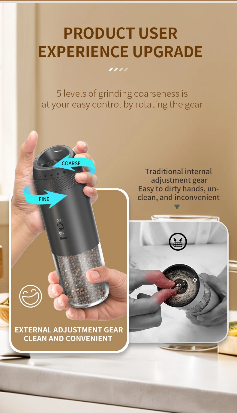 4. Gravity activated, just simply turn upside down and get fresh ground salt or pepper