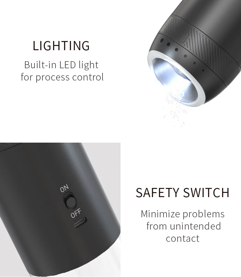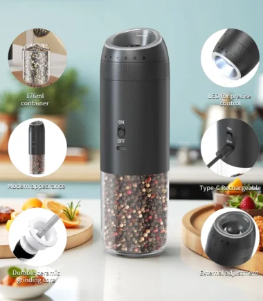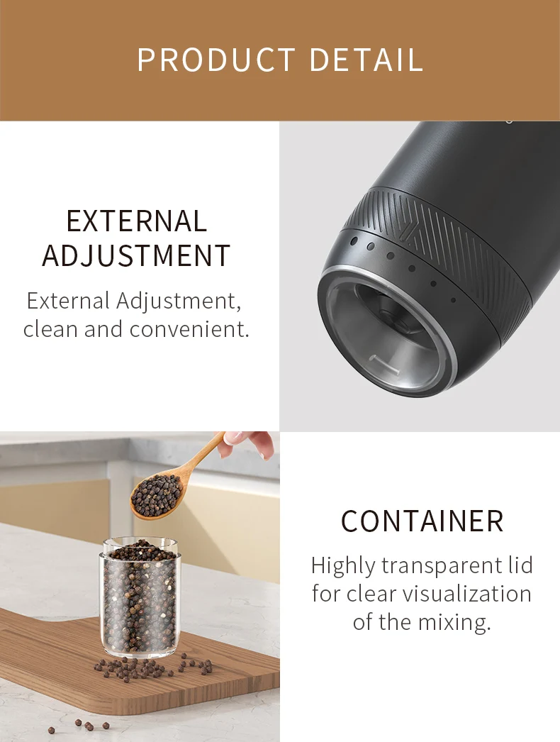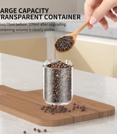 8. Large capacity of powder container (176ml), the remaining amount of pepper/salt is visible