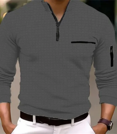 Be the first to review “2025 Spring and Autumn New Men’s Plaid Turtleneck Zipper Long Sleeve Polo Shirt Sports Breathable Business Casual Polo Shirt”