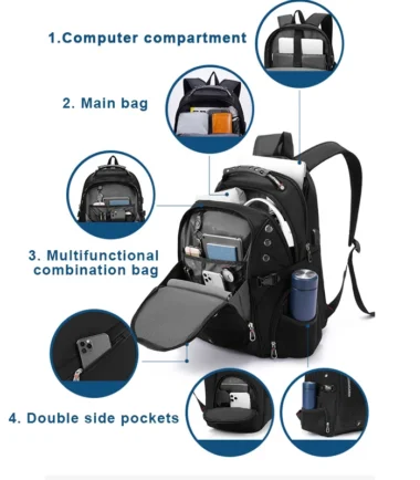 ✨ Selected splashproof and waterproof high quality material,anti theft double zipper, anti theft free padlock,large capacity, external usb charging port, only usb port, power bank not included