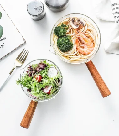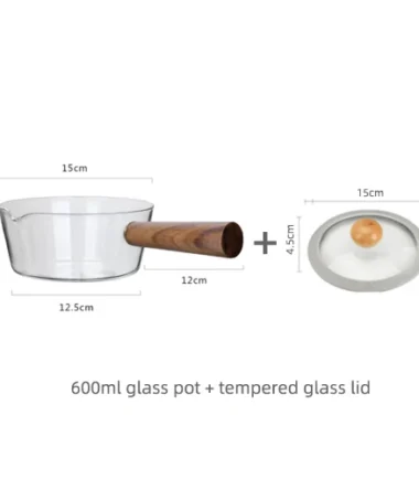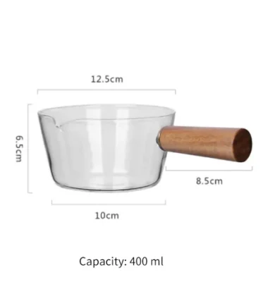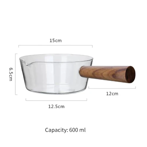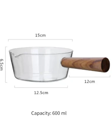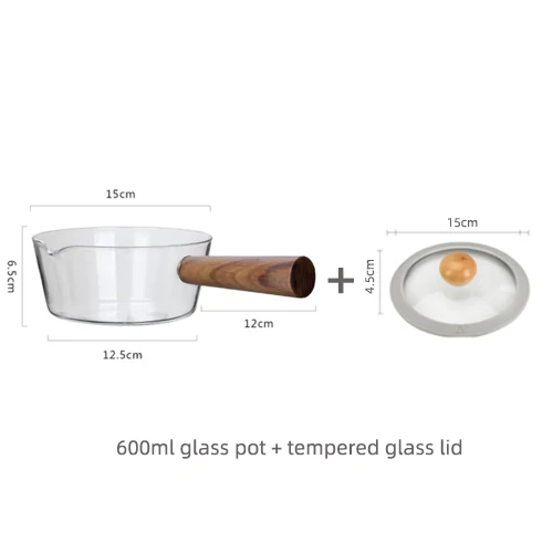 Glass Wooden Handle Milk Pot Household Baby Food Can Open Fire Hot Milk Noodle 400ml Pot Transparent Fruit Stew Pot Cookware