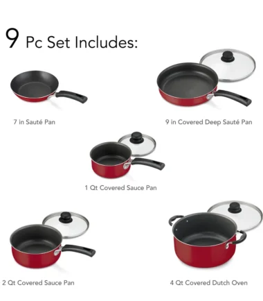 Be the first to review “9 Piece Nonstick Cookware Set with Tempered Glass Lids Easy Clean Aluminum Stackable Design Everyday Cooking”