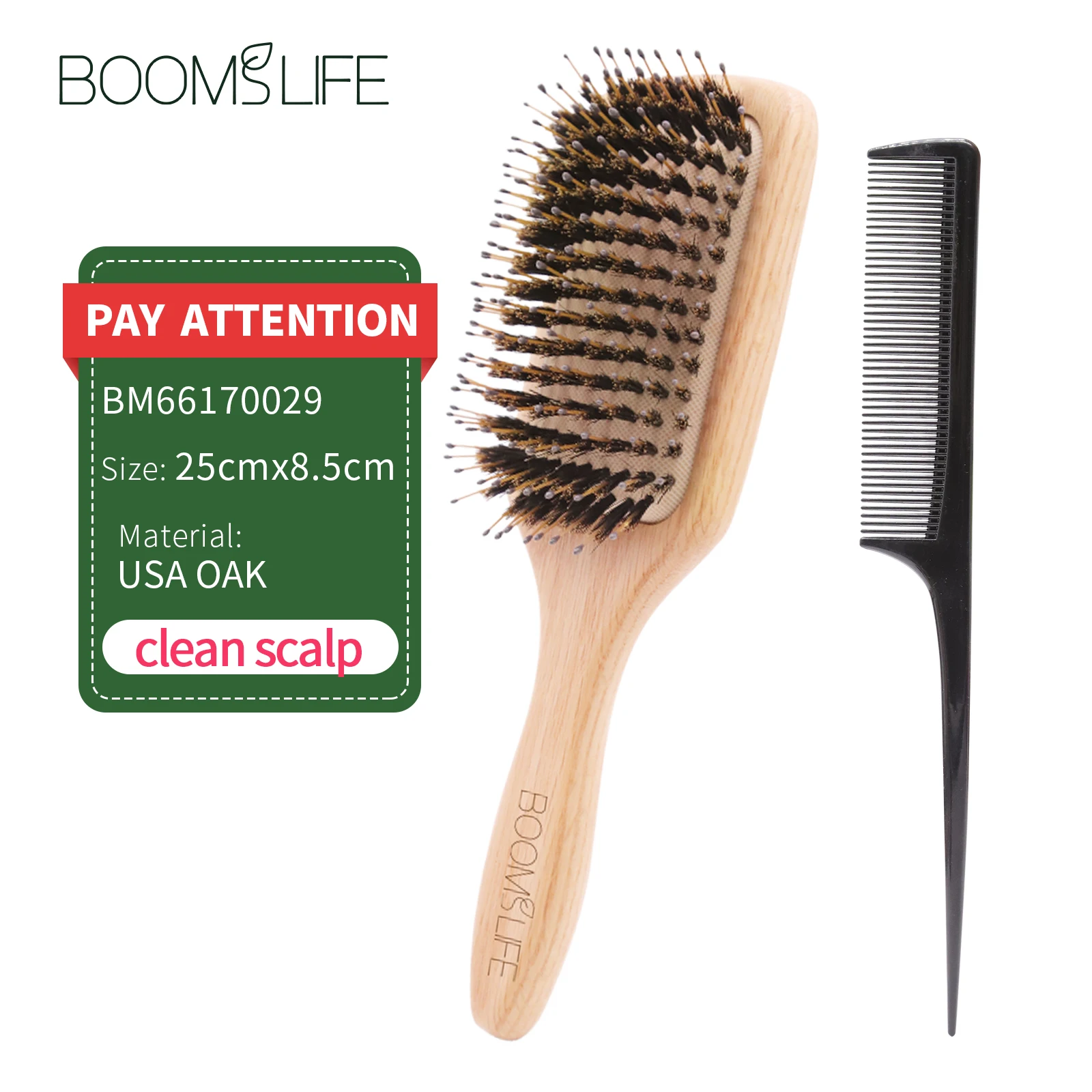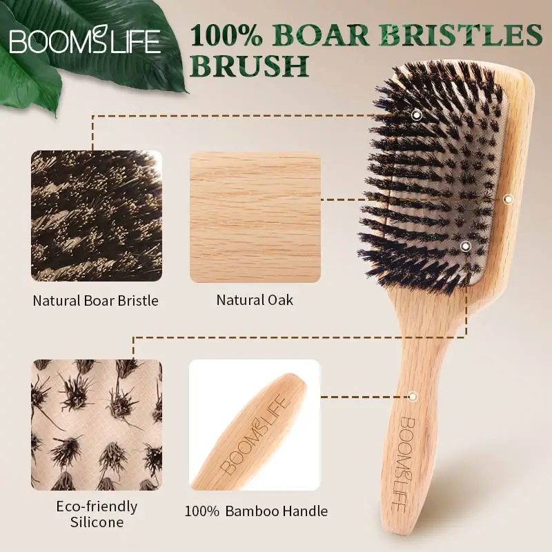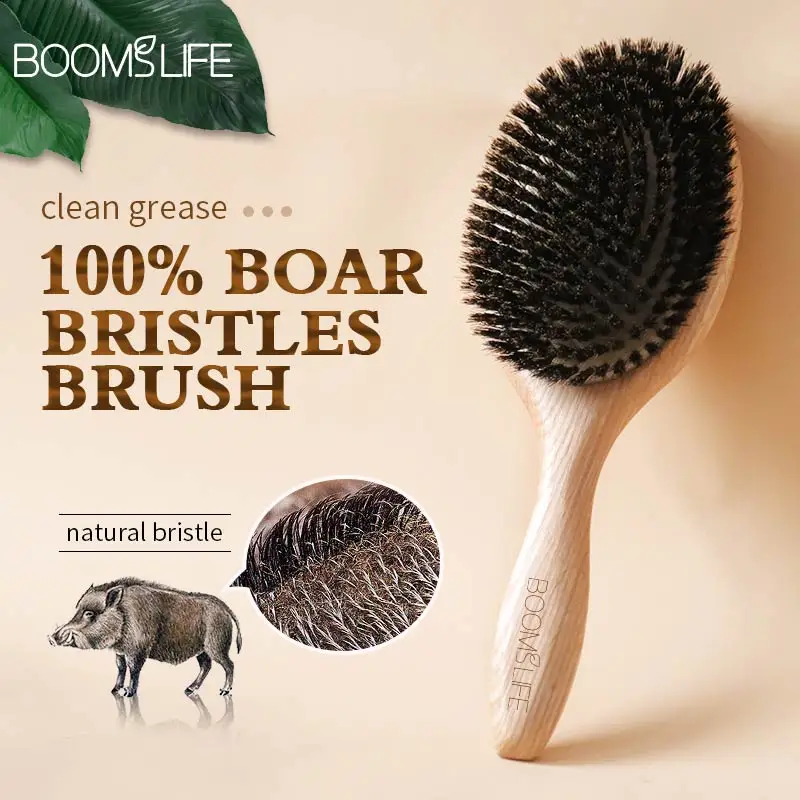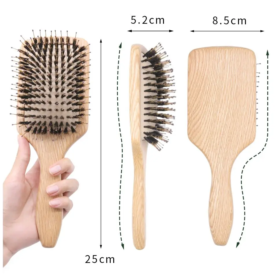 Boar Bristle Brush Wood Hair Brush Peine OAK Wood Combs for Women Barber Beauty Care Paddle Scalp Massage Brush