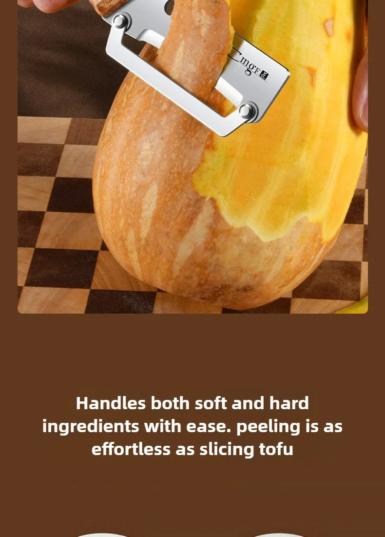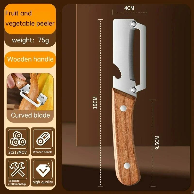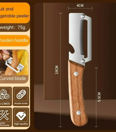 Comfortable and Secure Grip: The vegetable peeler features a non-slip wooden handle that provides maximum control and reduces hand fatigue.