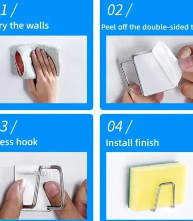 <<  Practical to use: The stainless steel sponge holder is  rustproof and waterproof. Good adhesive,not easy to fall off,durable and long lasting.