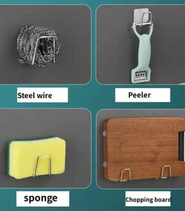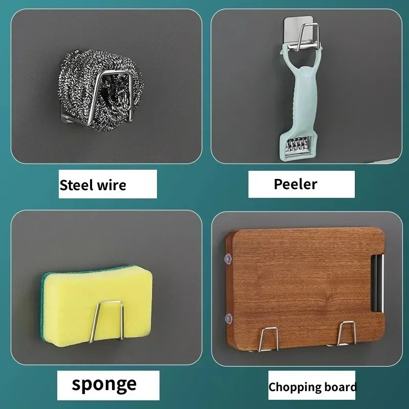 << Â Widely used: You can use to hang sponge, dishcloth, sink stopper, brush, small pot lid, cutting board,scissors,scrubber etc. Can use it at anywhere you want.