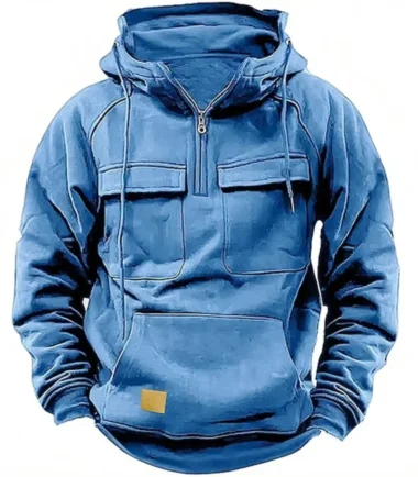Be the first to review “New autumn-winter men’s hooded solid-color casual hoodie – fashionable young man’s multi-pocket patch hoodie pullover shirt”