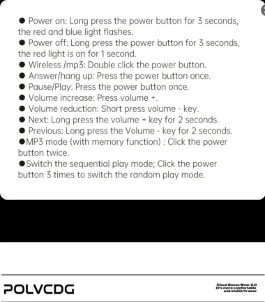 Switch the sequential play mode; Click the power button 3 times to switch the random play mode.