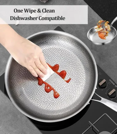 HEALTHIER COOKING, LESS OIL: With superior heat transfer & sleek surface, Titanium Hammered Pan lets you cook with minimal oil, promoting healthy meals