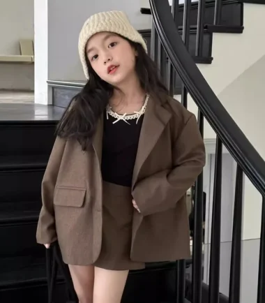 Suit skirt set for autumn 2024 loose suit jacket and skirt shorts for children and girls fashionable suit trendy kids clothes